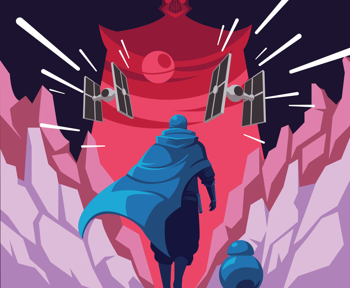 a Soldier and a Robot Ready to Fight in Outer Space