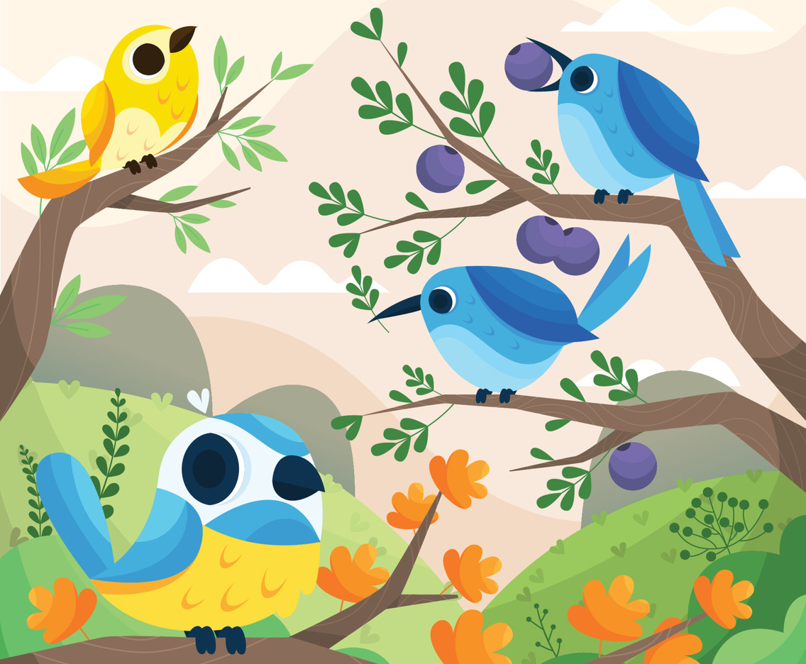 Birds Gather On Branches During Spring