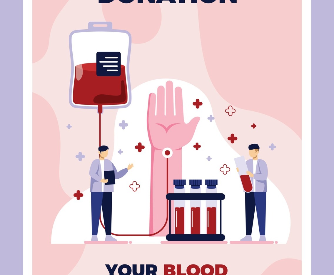 Blood Donation Poster with Two Peoples Observe about Donation Process