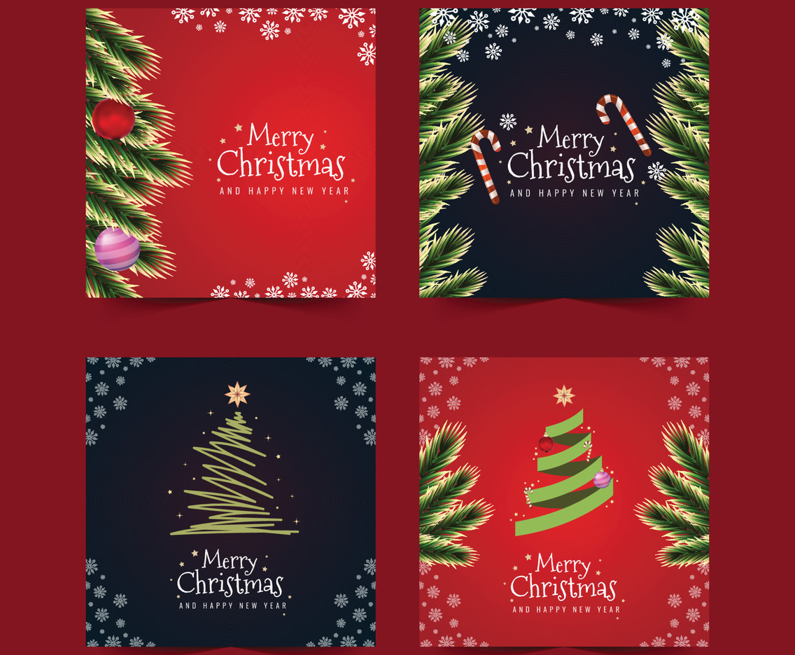 Christmas Tree with Abstract and Realistic Greeting Cards or Social Media Post