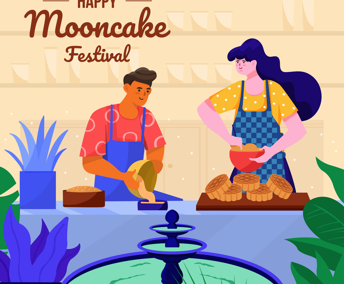 Couple Preparing Mooncake In The Kitchen Concept