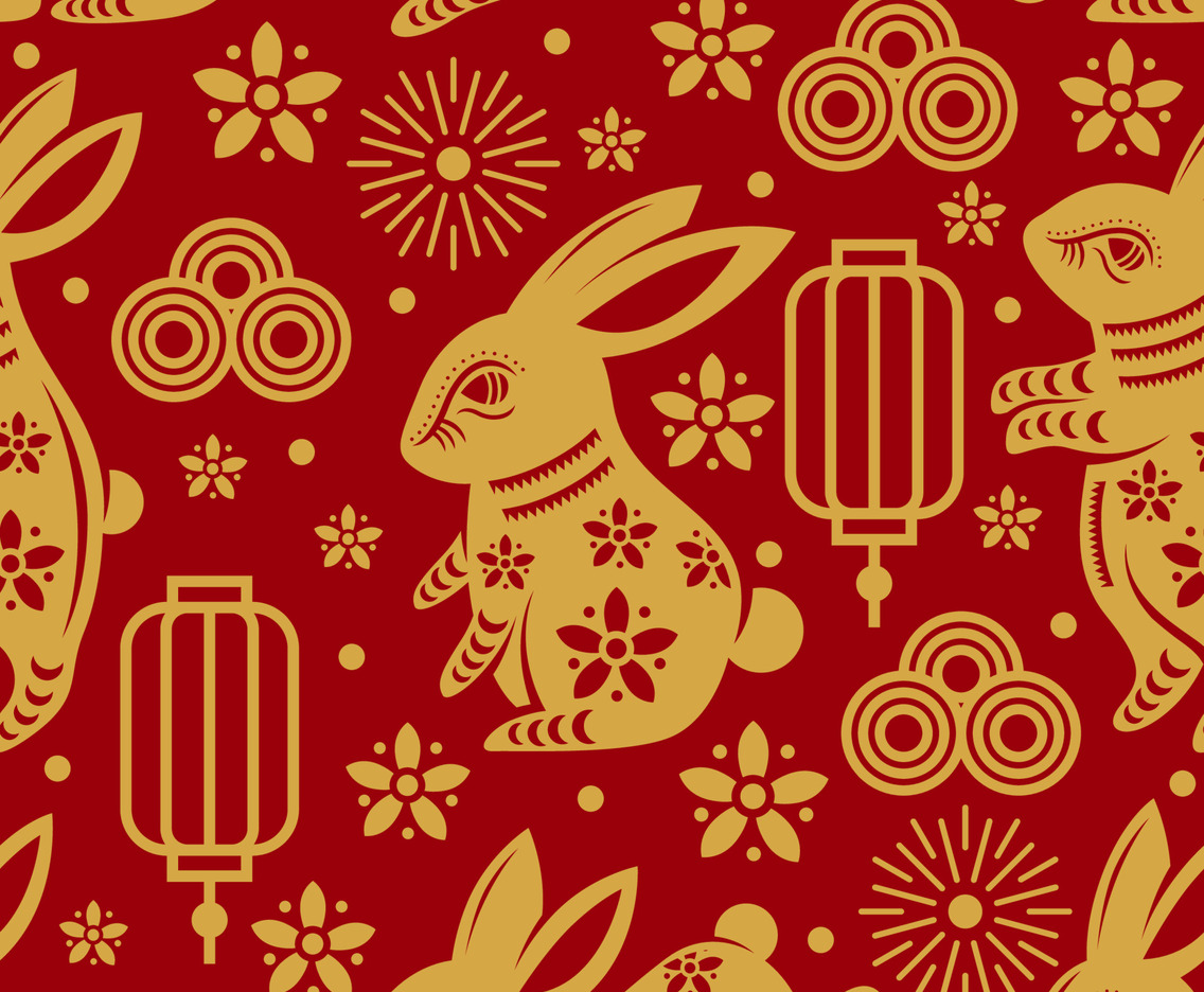 Deep Red Chinese New Year Seamless Pattern Background With Rabbit Element