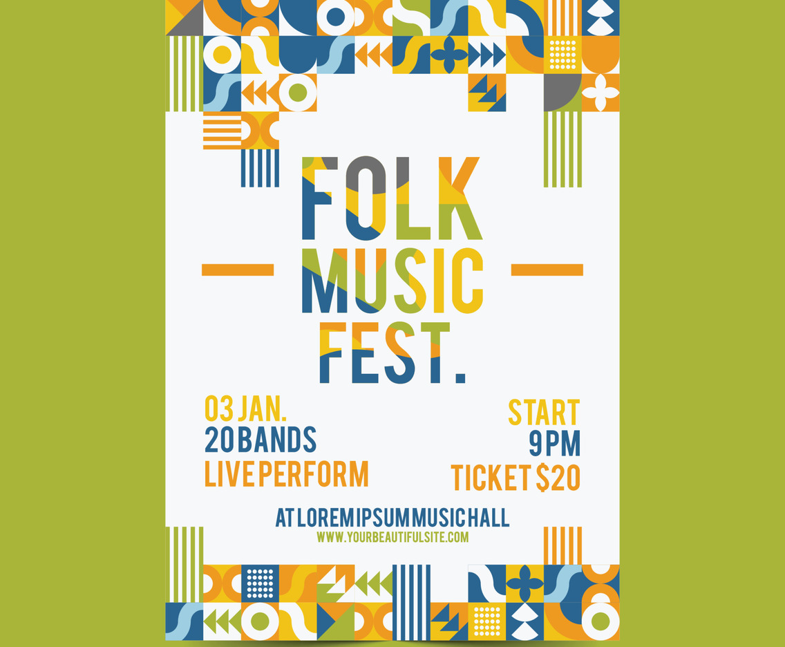 Flat Abstract Geometric Folk Music Festival Poster Template