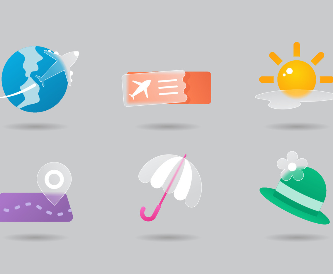 Glass Morphism Traveling Icons Set