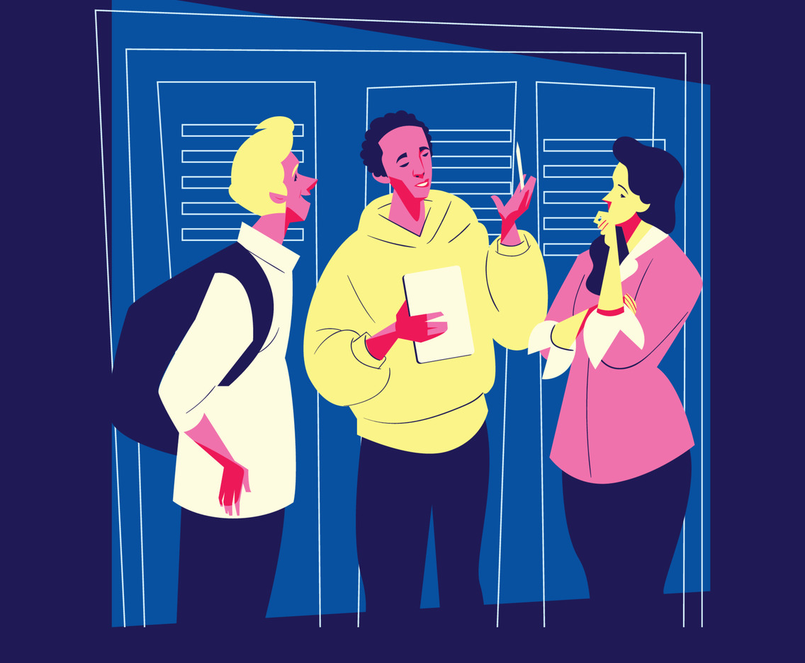 Students Doing Brainstorming in front of School Lockers