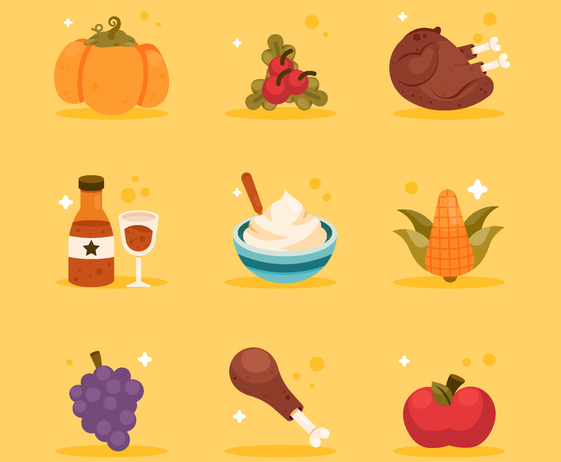 Thanksgiving Food and Beverages Icon Set Collection