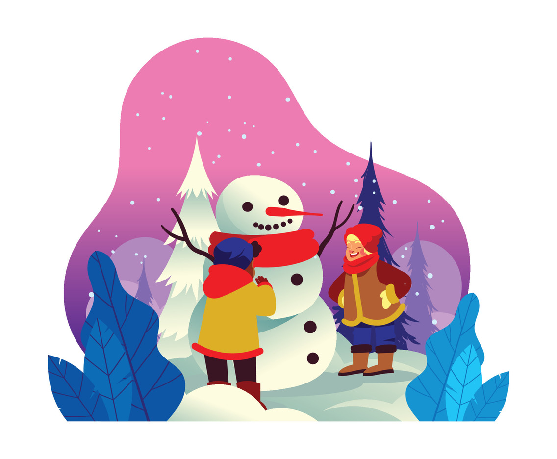 Two Kids Make a Big Snowman