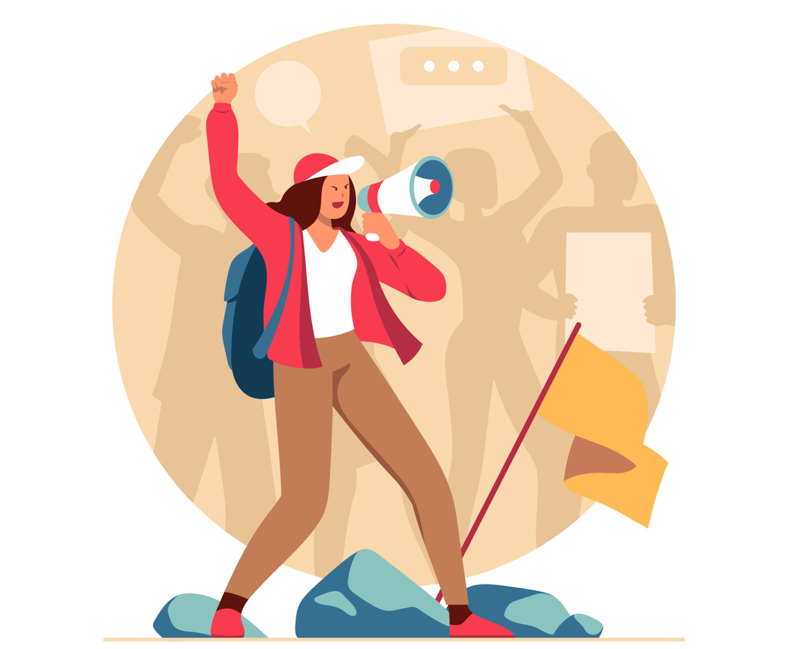 Woman Activist Screaming Using Megaphone