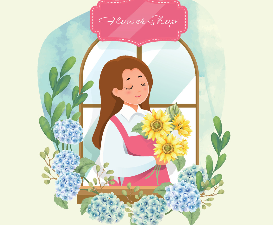 Women Florist With Sunflower and Hydrangea